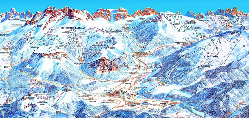 Cavalese is one of 11 small resorts that make up the Val di Fiemme ski area and a great base from which to explore this area. A typical Italian resort, Cavalese is a great choice for beginners, intermediates and families. The cobbled streets of the old village centre are charming and offer a good range of pubs and pizzerias to suit all budgets. The Alpi di Cermis ski area of Cavalese has a good range of alpine skiing, and its north-facing slopes, ensure that the resort has an excellent snow record.