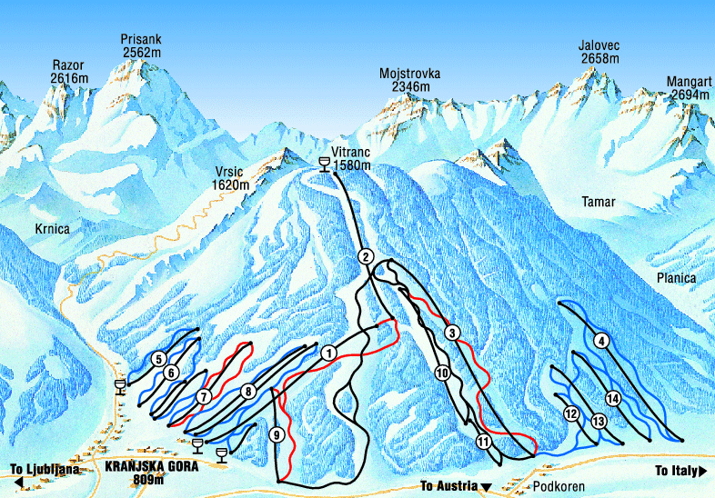 The Zgornjesavska Valley is one of the most breathtaking alpine valleys, with its centre of winter activity being the resort town of Kranjska Gora. The valley has developed into a major tourist and sports region and is hosting World Cup competitions in alpine skiing and ski jumping on the giant ski-jump in Planica. Skiing is by far the most popular sport in Kranjska Gora, with its sunny slopes, dominated by the Julian Alps. Located just a few miles from the Austrian and Italian borders and 60 kilometres from Ljubljana, the good skiing, combined with a range of other non-skiing activities, the friendly and laid-back attitude of the Slovenian people and the excellent value for money, all add up to make this resort a great ski holiday destination.