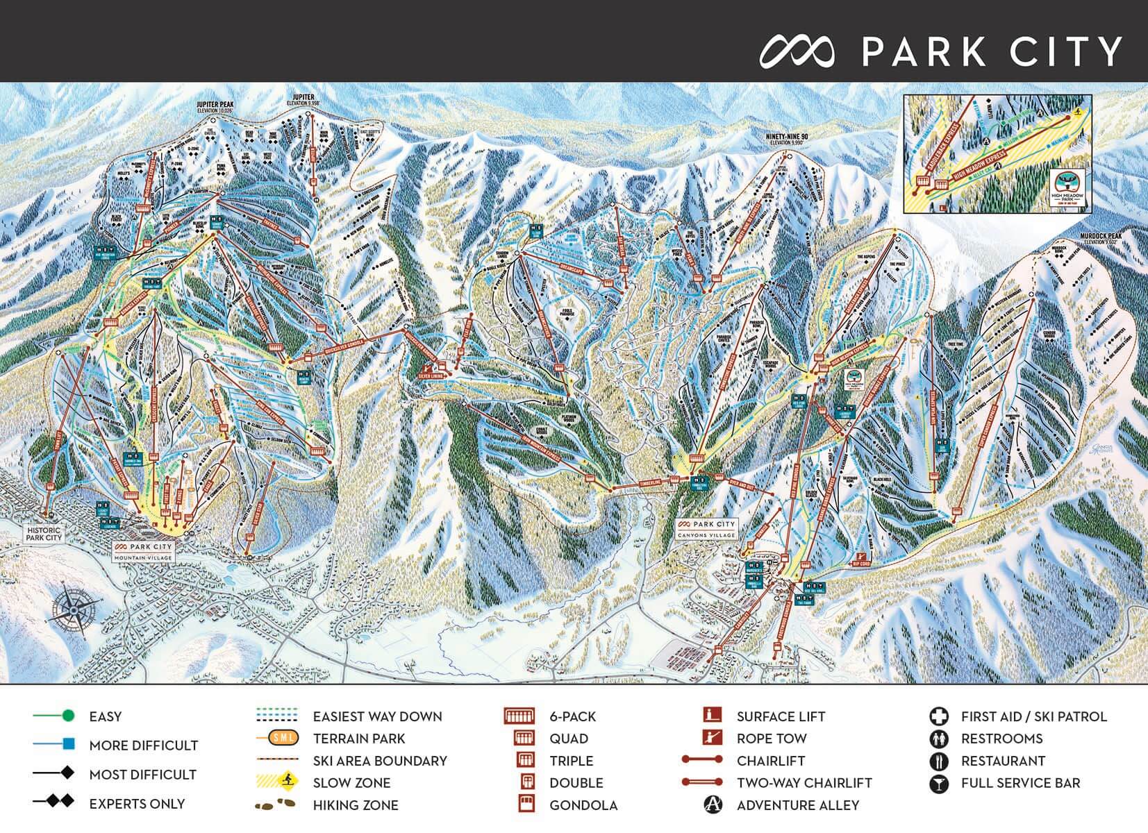 The terrain is diverse with "all green" lift servicing beginners' runs to the "all black" Ninety-Nine 90's lift servicing only advanced and expert runs. You can find extensive forests of both pine and aspen, so if tree skiing is your passion try The Pines on the north-side of Saddleback. For steep and deep the north-side trees off Tombstone is the best option. There are many areas that attract advanced and expert skiers. The chutes on the south side of Murdock Peak with the powder slopes are the most memorable.