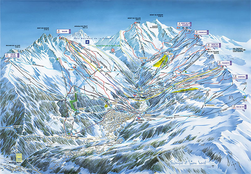 For keen ski hounds who dislike tacky purpose-built resorts, Méribel is difficult to surpass. It is slap bang in the middle of the Trois Vallees ski domain, the biggest inter-linked winter sports area in the world, with over 600 kilometres of fantastic skiing and snowboarding, as well as endless off-piste possibilities. Lovers of famous resorts like Courchevel and Val-Thorens used to turn their noses at Méribel's local slopes, but since the opening of extra ski areas in Mont Vallon and the top of the valley a few years ago, Méribel fortunes have turned around. Couchevel, Val Thorens, les Menuires, St Martin, and La Tania are now all directly linked to Meribel and to each other.